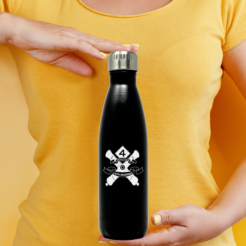 Our Marine Corps water bottle features the 3rd Bn 14th Marines logo. And you don’t think we’d screen print this artwork, do you? Of course not. The images are laser-etched into the steel to remain forever as bold and crisp as they appeared on Day One.