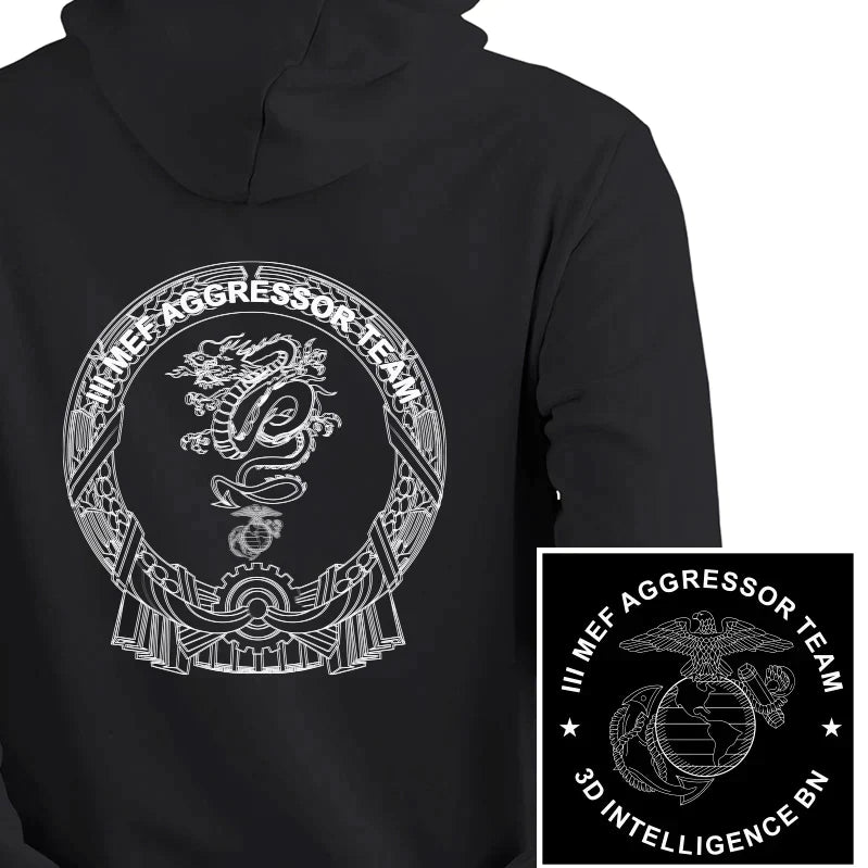 About our Marine Sweatshirts, the 3rd Intelligence Battalion hoodie is always a great choice. This Marine Corps hoodie is made of a 50/50 cotton/poly blend and is spill-resistant. In your effort to satisfy your Marine Corps sweatshirt needs, the hoodie will not come short.