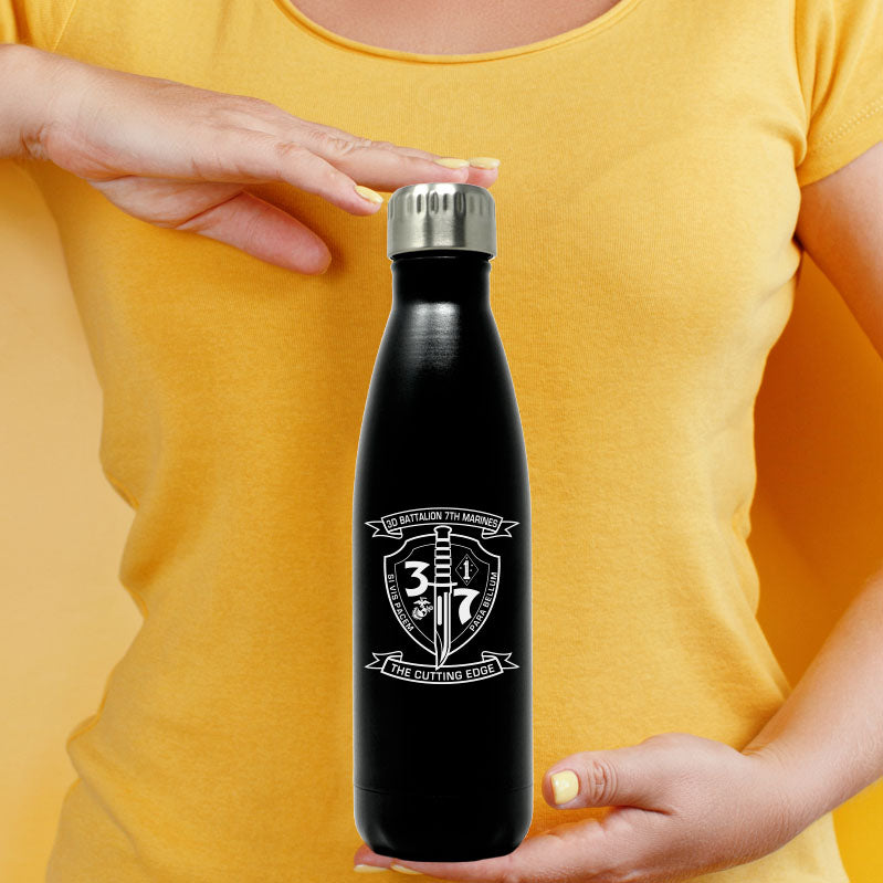 Our Marine Corps water bottle features the 3rdBn 7th Marines logo. And you don’t think we’d screen print this artwork, do you? Of course not. The images are laser-etched into the steel to remain forever as bold and crisp as they appeared on Day One.