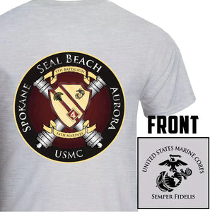 5th Battalion 14th Marines Unit Gear. USMC Unit Apparel Featuring the Unit's Logo on the back and a Small Marine Corps EGA on the chest. This logo is also available on long sleeve t-shirts and hoodie sweatshirts! Find this logo as outlines (no color) on a t-shirt, as well!