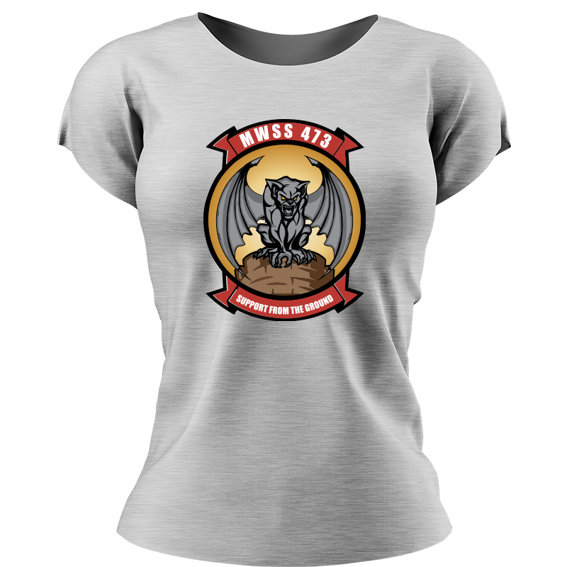 Support Your Unit with Pride! Ladies Marine Wing Support Squadron-473 (MWSS-473) USMC Unit T-Shirt. Celebrate your hard work as a Marine with a MWSS-473 women's unit shirt from Military Veteran Products. We have a full line of USMC unit logo gifts and apparel. Great Marine Corps gift idea for men and women. USMC VETERAN OWNED BUSINESS