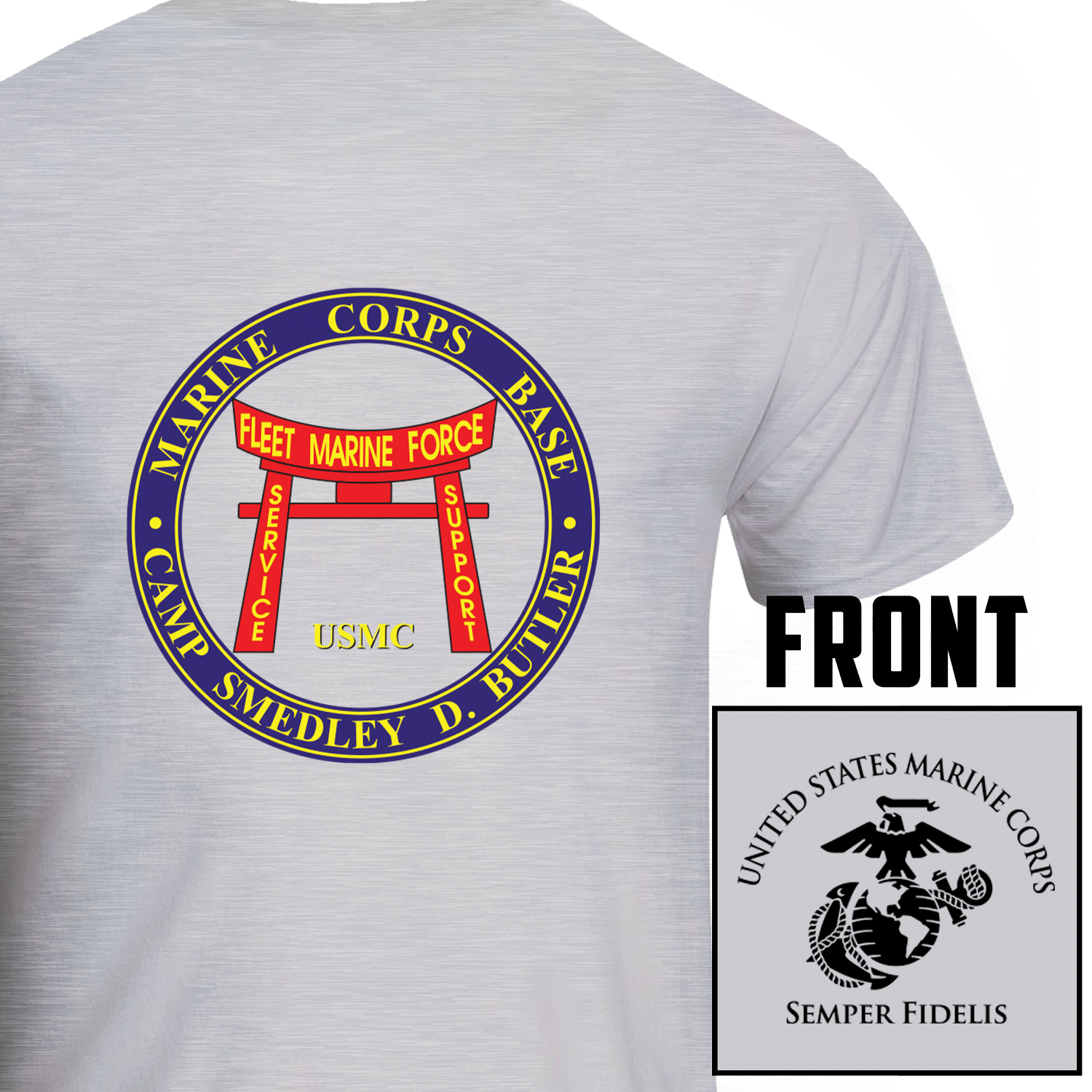 Support Your Unit with Pride! Marine Corps Base Camp Smedley D. Butler USMC Unit T-Shirt. There’s no better way to celebrate your hard work as a Marine than with a Marine Corps Base Camp Smedley D. Butler\ unit shirt from Military Veteran Products. We have a full line of USMC unit logo gifts and apparel. Great Marine Corps gift idea for men and women. USMC VETERAN OWNED BUSINESS