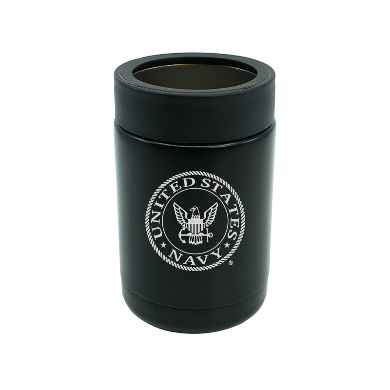 Our stainless steel Navy can cooler features the US Navy star emblem. And you don’t think we’d screen print this artwork, do you? Of course not. The images are laser-etched into the steel to remain forever as bold and crisp as they appeared on Day One.