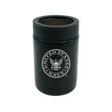 VETERAN OWNED BUSINESS - Our metal can coolers with the US Navy logo are laser engraved in the USA by a team of veterans & military families